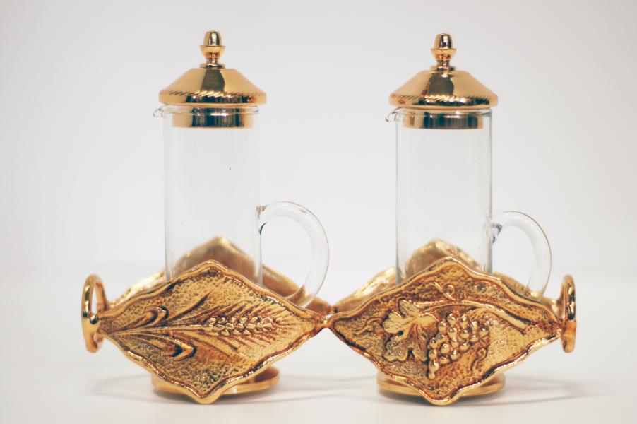 Servizio ampolle a cilindro in vetro e ottone dorato GALF444