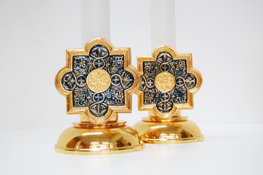Candeliere realizzato in ottone dorato con decorazione barocca.