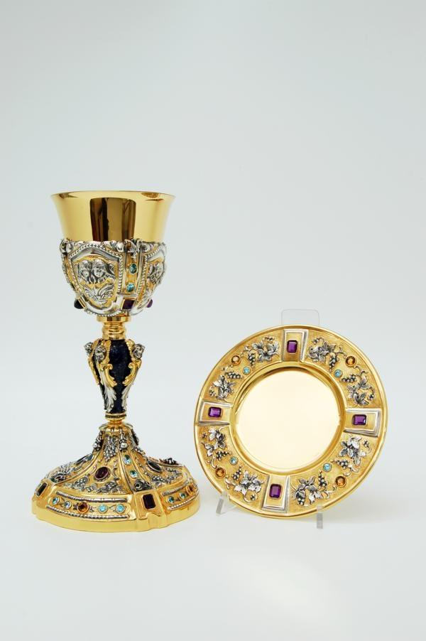 Calice e patena in argento dorato, lapislazzuli e pietre dure