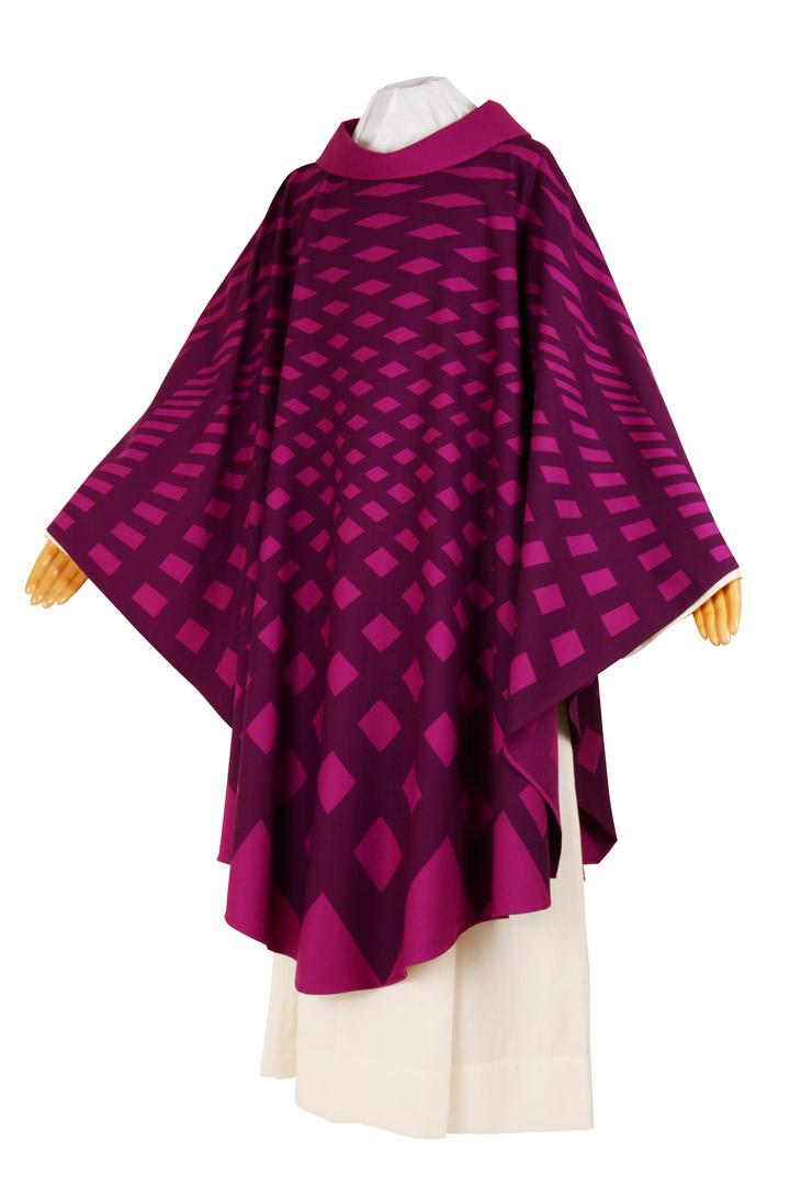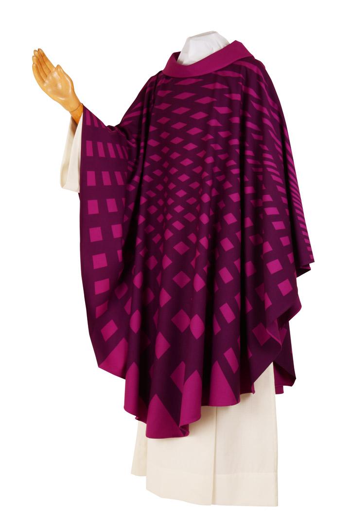 Casula Rete Art. CSER10 Confezionata in Sallia di Pura Lana Il tessuto sallia o "saglia" che utilizziamo per le nostre confezioni è realizzato con lana pettinata pura, perfettamente rasato e piuttosto brillante. Semplice e luminosa nelle tinte unite, la sallia di lana è un tessuto di alta qualità apprezzato per la sua eleganza, raffinatezza e versatilità. Sa valorizzare molto bene le lane pregiate, per questo motivo è molto utilizzata in contesti cerimoniali. Produzione Sartoriale Made in Italy dal 1939 Le varie decorazioni, ideate dal nostro studio di progettazione, sono frutto di una attenta ricerca volta al rispetto dei dettami della liturgia. I paramenti vengono poi confezionati nella nostra sartoria con procedimento puramente di tipo sartoriale. Le nostre vesti liturgiche sono di pregio e di ottima qualità e grazie alla confezione sartoriale siamo in grado di apporre le modifiche e le personalizzazioni richieste dal cliente. Misura standard: Larghezza cm 180 Lunghezza cm 135
