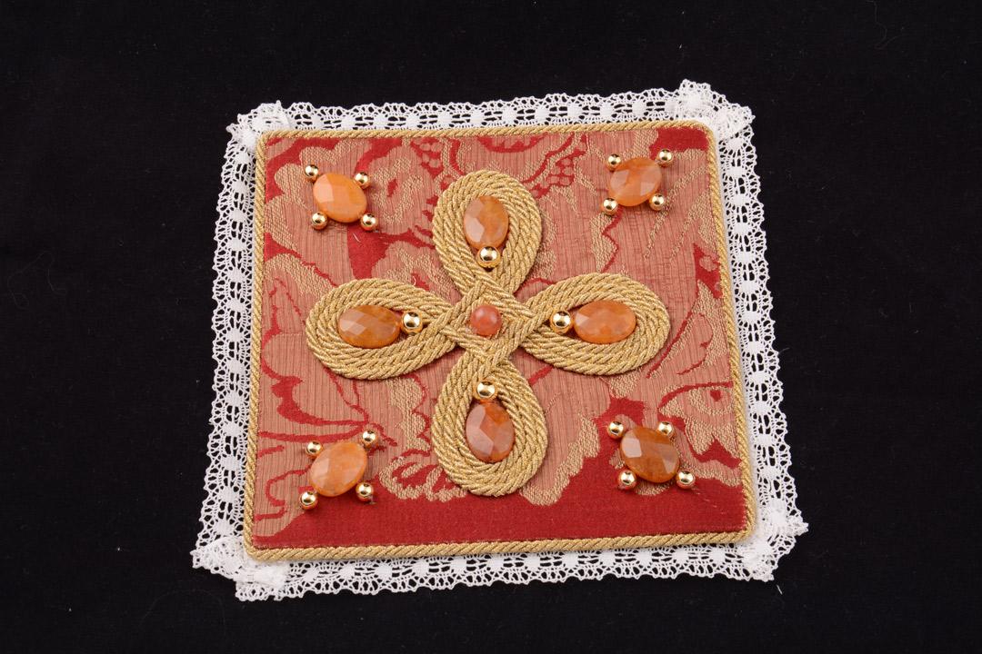 La palla è un piccolo quadrato di lino con decorazioni eseguite su seta, utilizzato per coprire il calice, specialmente dall’Offertorio alla Comunione.