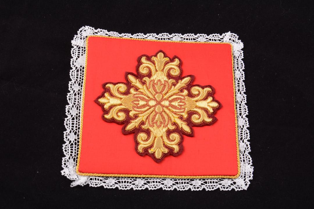 La palla è un piccolo quadrato di lino con decorazioni eseguite su seta di 15x15 cm, utilizzato per coprire il calice, specialmente dall’Offertorio alla Comunione.