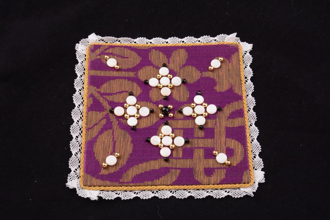 La palla è un piccolo quadrato di lino con decorazioni eseguite su seta, utilizzato per coprire il calice, specialmente dall’Offertorio alla Comunione.