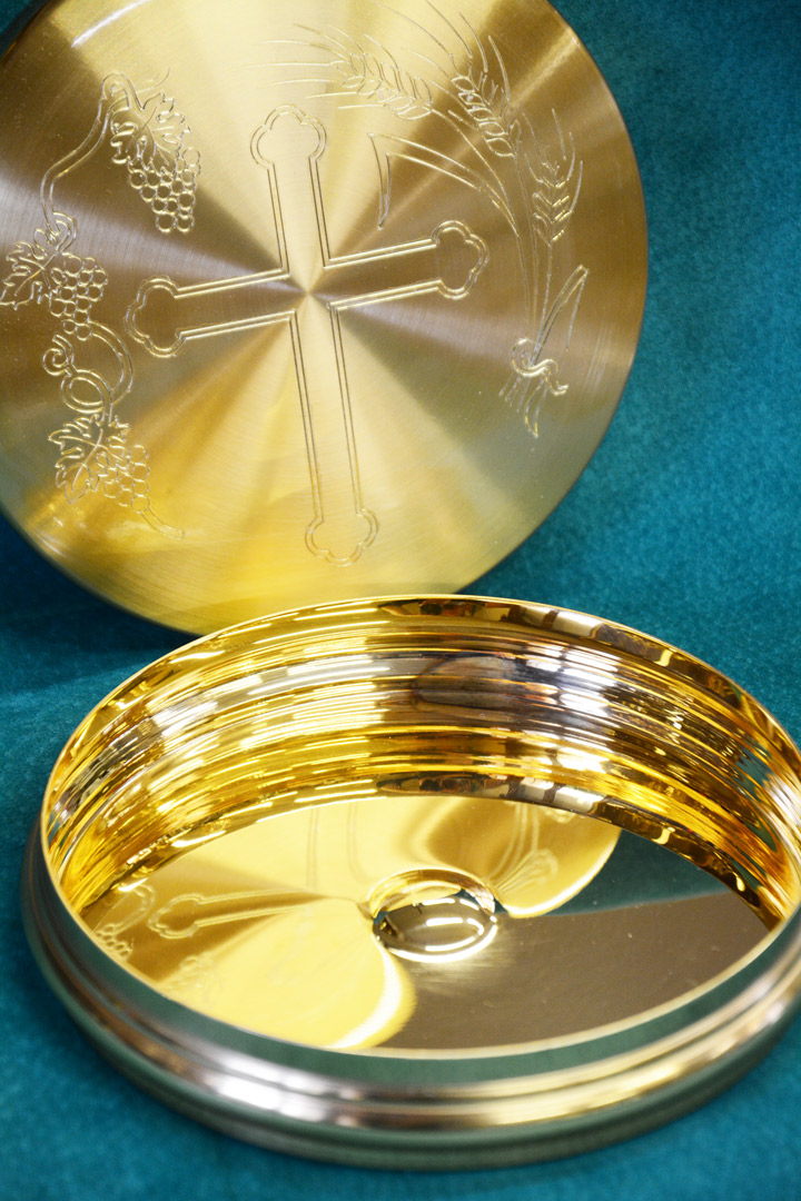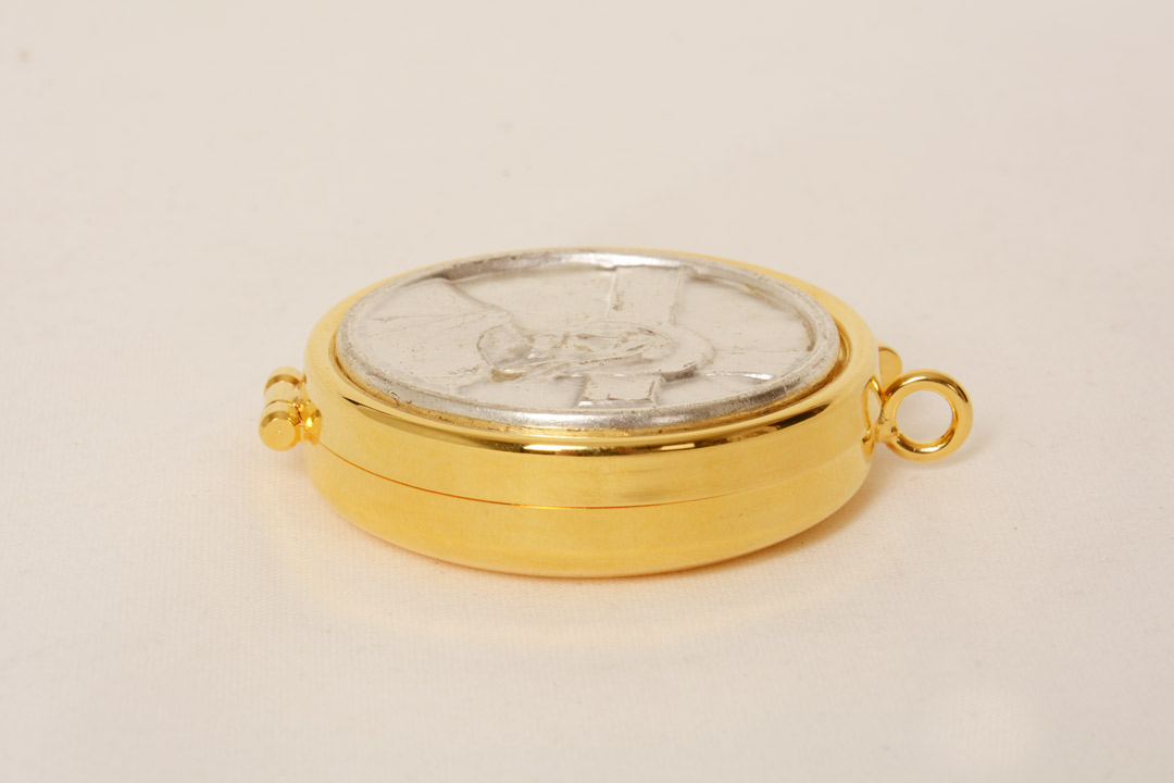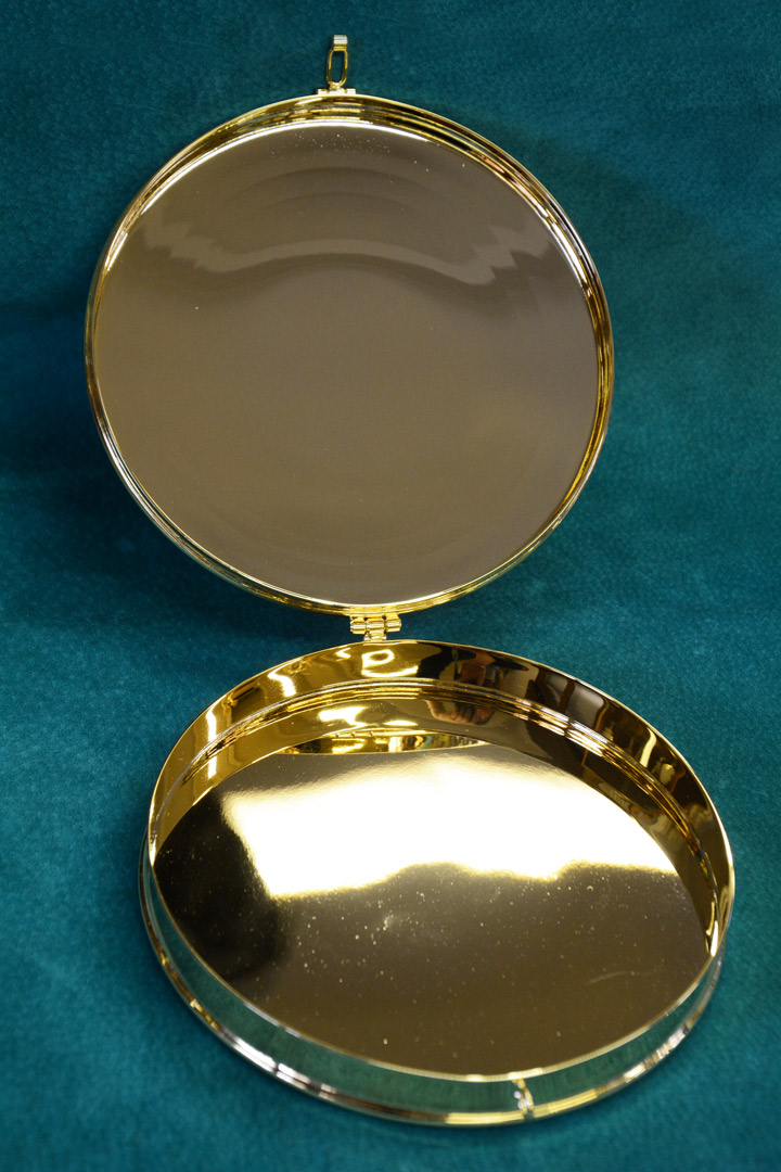 Teca Eucaristica sbalzata e cesellata decorazione bicolore Ø cm 5